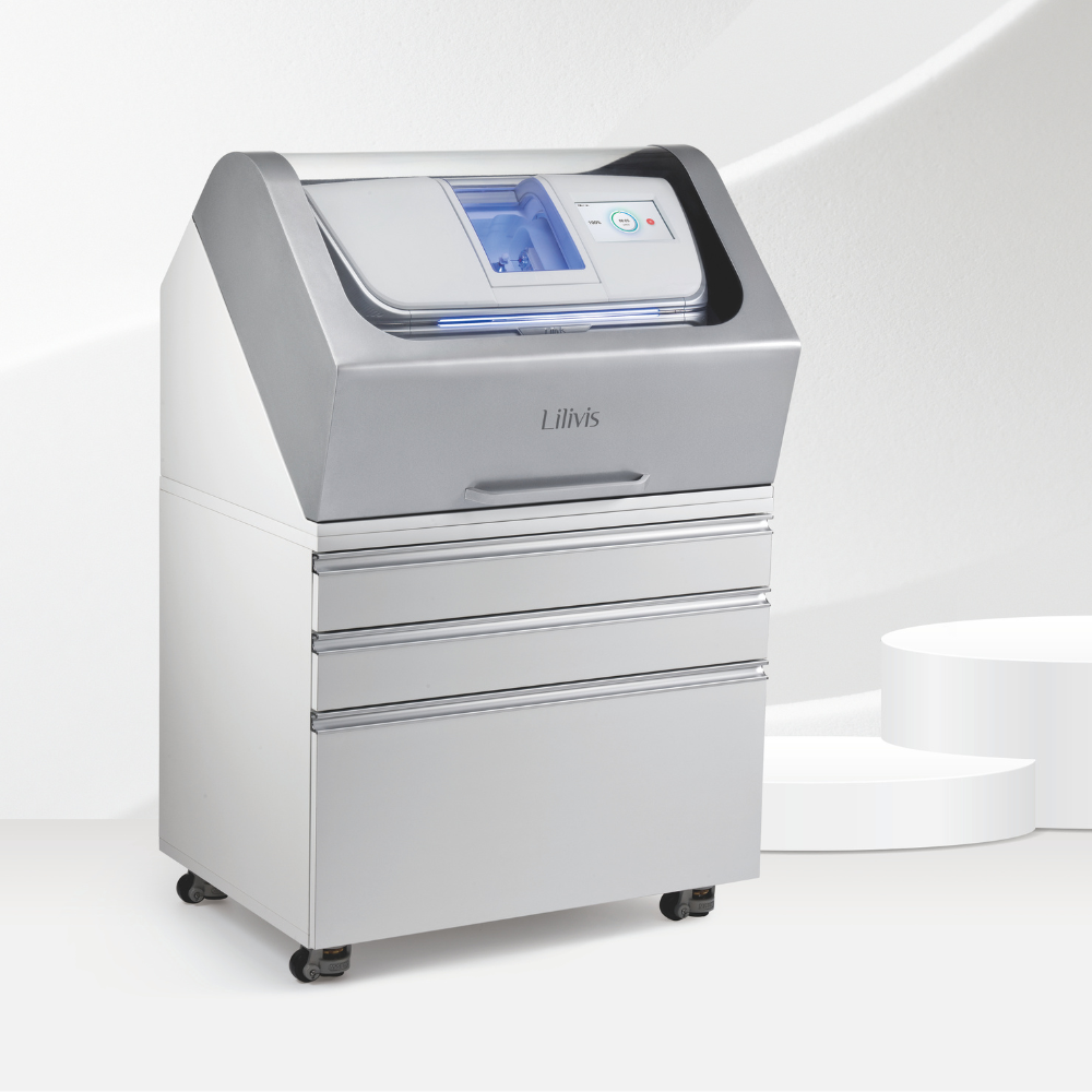 Lilivis MILL STATION is the essential choice for an efficient prosthetic fabrication environment. The upper Tabletop features a noise-reduction structure for a quiet workspace, while the lower three-tier Base can be used by efficiently arranging the material necessary for work.